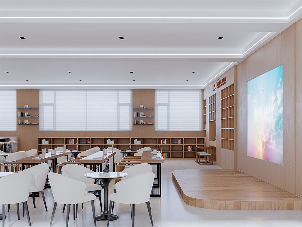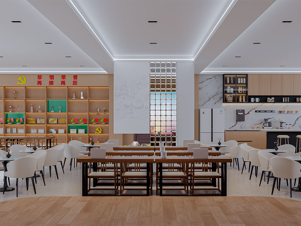 臨清國網職工之家裝修效果以 “溫馨實用 + 電力特色” 為核心,整體采用暖白、淺藍為主色調,搭配國網標志性的紅色元素點綴。空間劃分上,既有配備舒適沙發、綠植與書籍的休閑區,方便職工放松休憩;也有設置乒乓球桌、健身器材的運動區,滿足日常鍛煉需求;同時融入電力主題細節,如墻面掛置電網作業場景裝飾畫、角落擺放小型電力設備模型,凸顯行業屬性;功能區還兼顧實用性,茶水間配備齊全廚具,活動區預留靈活桌椅組合,可滿足職工聚餐、小型活動等需求,整體營造出兼具歸屬感與行業辨識度的溫馨空間,切實服務職工日常。